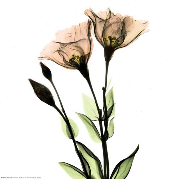 Röntgen image of a flower isolated on white, the Papaveroideae. Newest results. transparent flower. x ray rose. translucent flower. x ray shell. Steven Meyers uses the fine art of X-ray photography to capture flowers and botanicals in invisible light.