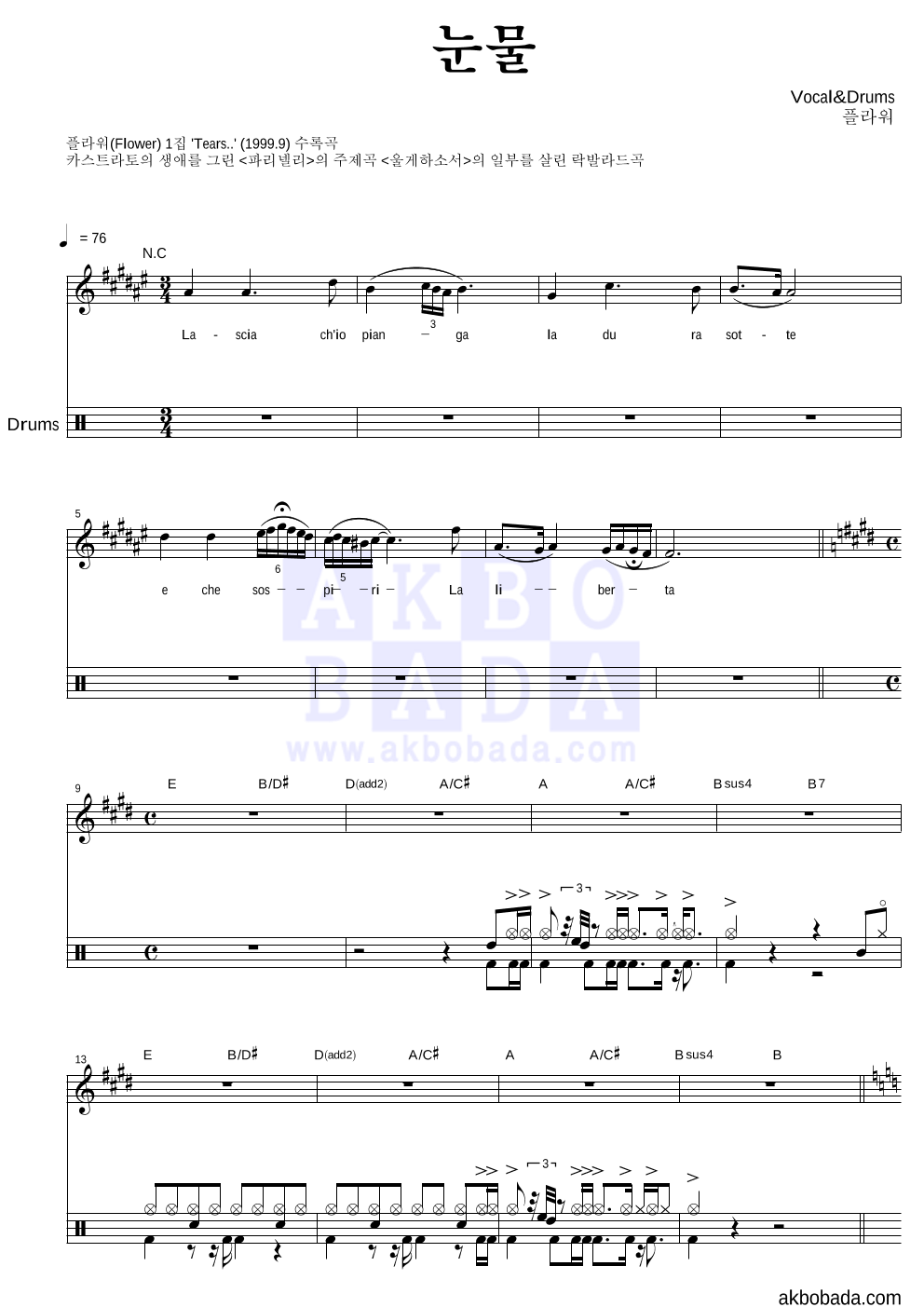 플라워(Flower) 눈물 악보 : 악보바다