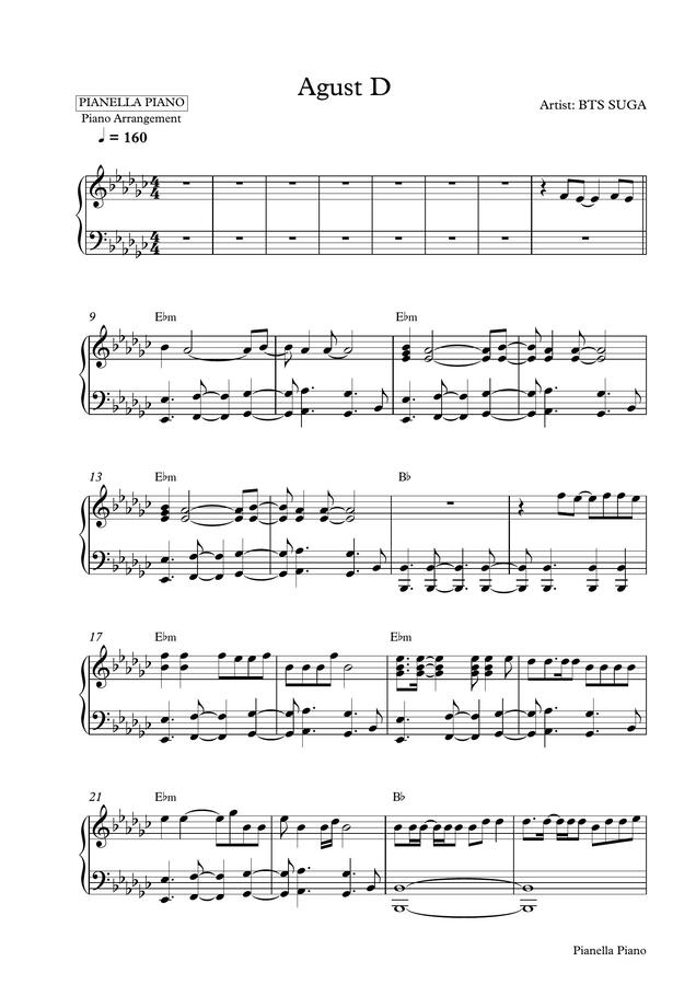 Pianella Piano > BTS SUGA - AGUST D (Piano Sheet+Drum) by ...
