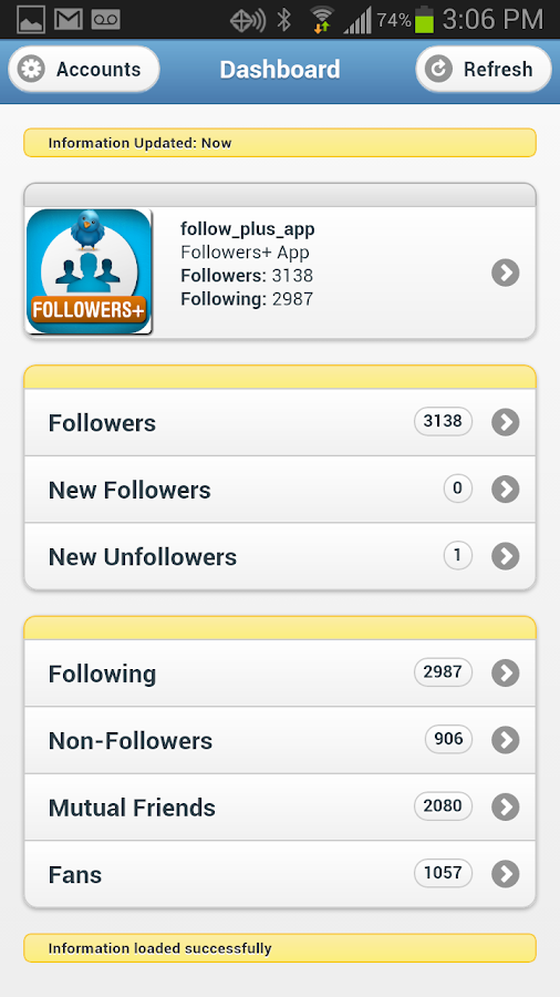 Followers Unfollowers Login. Your stats are supported with awesome graphs to see your ups and downs easily. Find people you have blocked and your mutual friends.